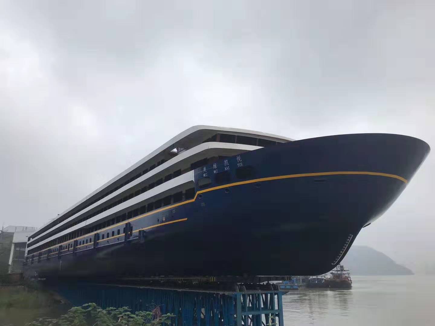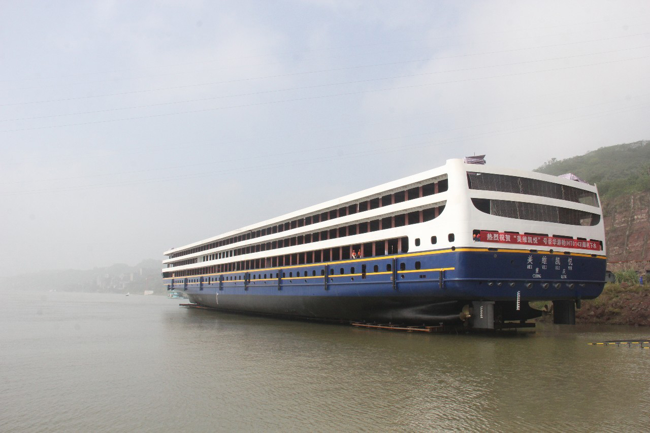 “美維凱悅”游輪總長149.99米,,型寬21.8米,型深4.5米,設(shè)計吃水2.9米,為鋼質(zhì)、雙尾、前傾首柱、雙槳、雙舵、雙電機(jī)驅(qū)動的游輪,建成后將是中國內(nèi)河最大游船,主要用于接待國內(nèi)外賓客游覽長江三峽,是長江干線重慶至上海移動的五星級水上酒店,“美維凱悅”同樣采用賽思億直流組網(wǎng)電力推進(jìn)系統(tǒng),整船裝機(jī)容量5MW,直流組網(wǎng)技術(shù)的應(yīng)用在為游客帶來更安靜、舒適的游覽體驗的同時,大大優(yōu)化了柴油機(jī)組運(yùn)行工況,明顯改善船舶氣體排放問題。