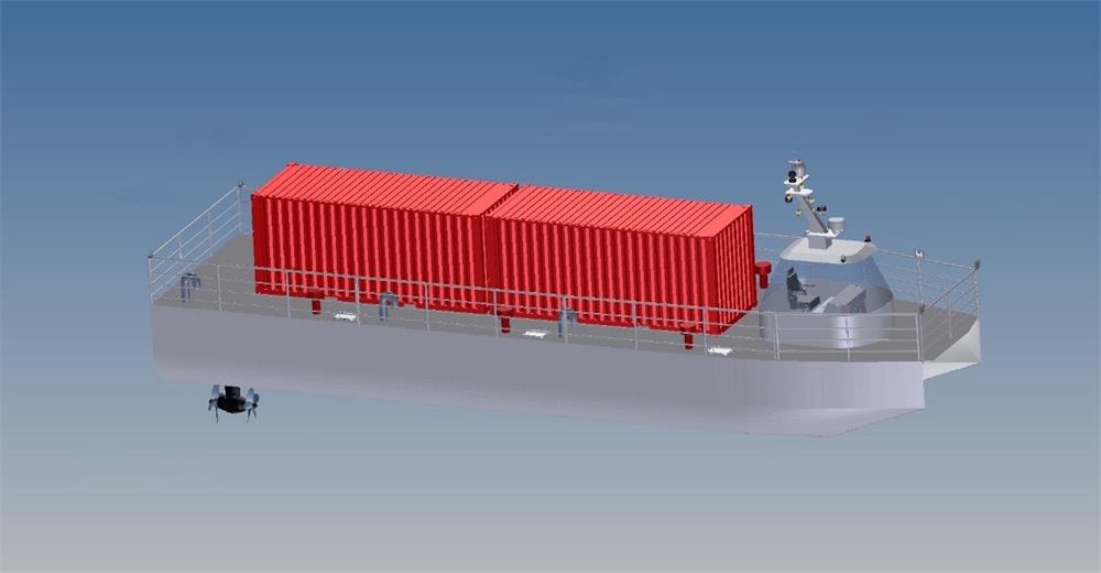 多功能雙體無人船總長(zhǎng)19.9m,型寬5.5m,設(shè)計(jì)吃水0.9m。該無人船設(shè)有2臺(tái)200kW全回轉(zhuǎn)主推進(jìn)器、1臺(tái)30kW側(cè)推進(jìn)器,采用S-Hybrid-R柴油機(jī)+新能源動(dòng)力推進(jìn)系統(tǒng)(柴油機(jī)+電池)并采用直流組網(wǎng)電力推進(jìn)形式,是賽思億首個(gè)無人船混合動(dòng)力系統(tǒng)訂單。