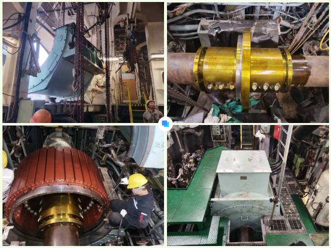 “KANARIS” 177000DWT散貨船,船長(zhǎng)282m,入級(jí)ABS船級(jí)社,改造方案搭載中船賽思億分半式永磁抱軸電機(jī)+變頻器+變壓器的軸發(fā)改造方案,軸發(fā)系統(tǒng)額定功率1200kW,同時(shí)對(duì)原船功率管理系統(tǒng)(PMS)和主機(jī)遙控系統(tǒng)(ECS)進(jìn)行改造,可實(shí)現(xiàn)降功率運(yùn)行及轉(zhuǎn)速低時(shí)自動(dòng)啟動(dòng)發(fā)電機(jī)組,保護(hù)電站及船舶穩(wěn)定運(yùn)行。作為全流程 EPC 總承包項(xiàng)目,中船賽思億全程主導(dǎo)了從前期3D掃描、方案布置設(shè)計(jì)、生產(chǎn)制造到安裝及調(diào)試等全鏈條服務(wù)。