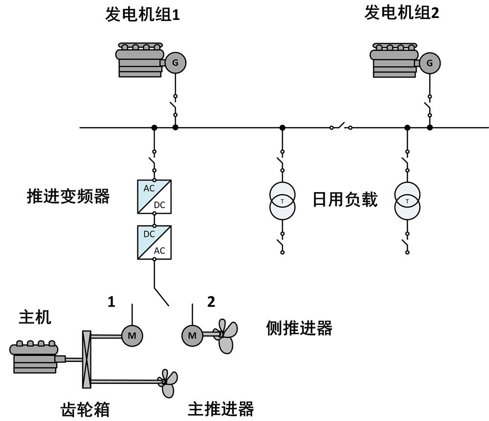 浙漁科2號漁業(yè)資源調(diào)查船,該船長48.88米,型寬8米,設計吃水3.4米,排水量700t。系統(tǒng)配置主機功率為1007kW,輔助推進電機功率為220kW,定員33人,采用了綠色動力型式—柴電混合動力,最大航速約12kn。船舶動力設備交付時間2016年5月,累計無故障運行時間近3年。
